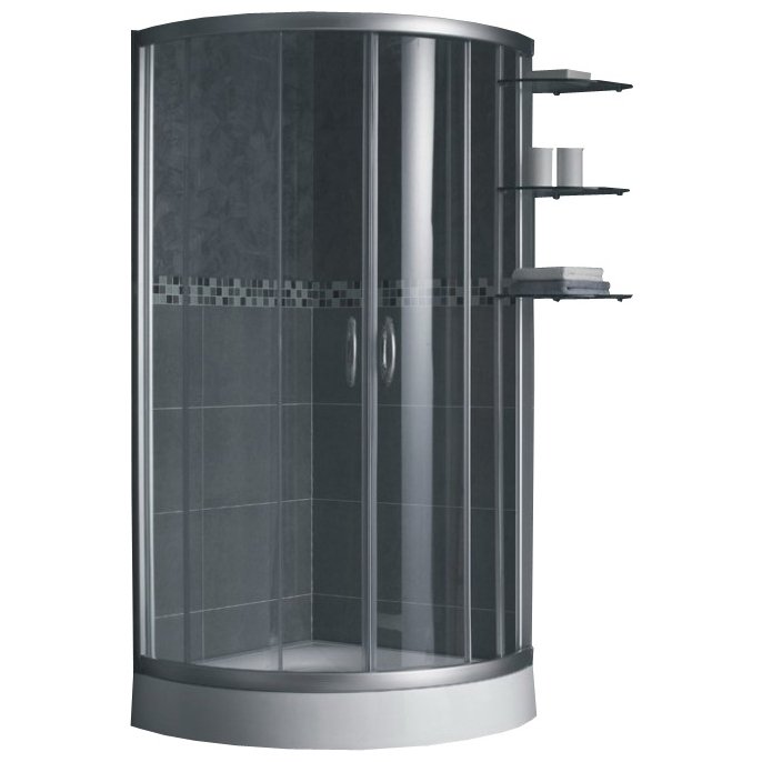 Ограждение для душа BandHours Eureka – необычная модель, размерами 90x90 см., где боковые полки расположены с правой стороны угла и доступны изнутри. При этом сама конструкция душевого уголка имеет традиционную форму четверть круга на двух раздвижных дверцах, предусматривающей низкий поддон из акрила в основании. Система движения створок, обеспечивается двусторонним роликовым механизмом, долговечность которого гарантируется хромированными подшипниками.